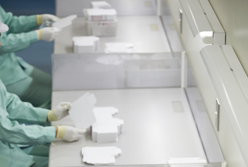 衛生管理された環境で、医薬品や化粧品などのパッケージを製造しています。
